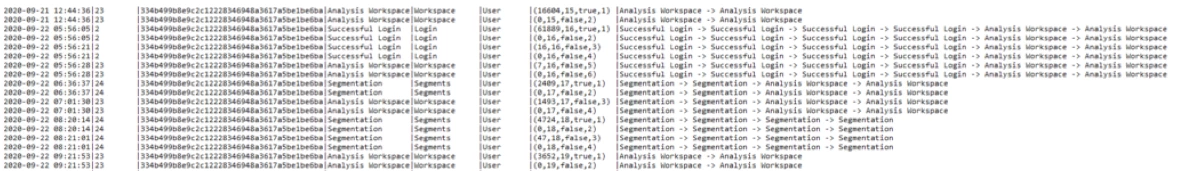 Here we are going to recreate pathing reports from the ancient Reports & Analytics within Adobe Analytics! And not only that: We are going to use Adobe Analytics Logfiles as our dataset to keep things interesting. The base dataset looks like this: