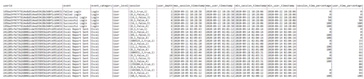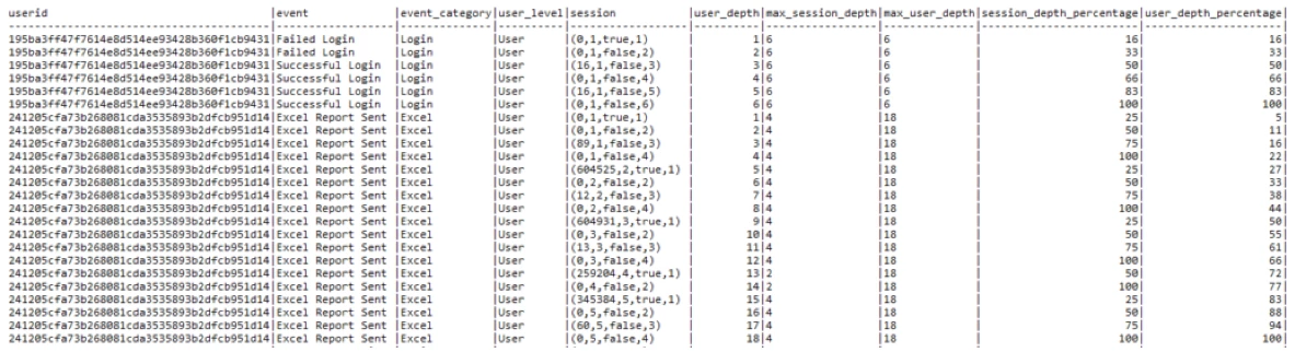 , int(user_depth / max_user_depth * 100) user_depth_percentageYou see right: I just calculated the percentage of how far in a session or user journey a certain event occurred. It looks like those two new columns now: