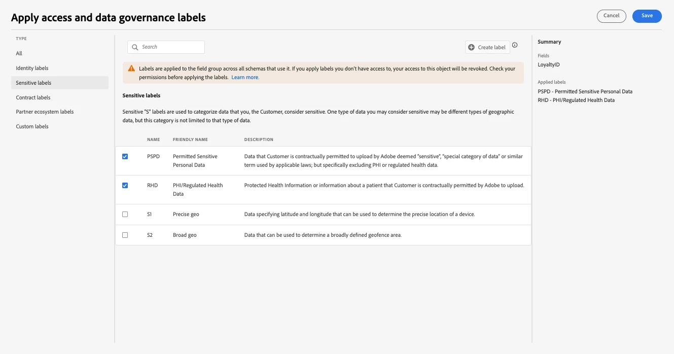 I then tested after adding the PSPD and RHD labels to my role (in Permissions) and I'm able to remove them in the same way using the cross but I'm also able to delete them without those labels it seems.