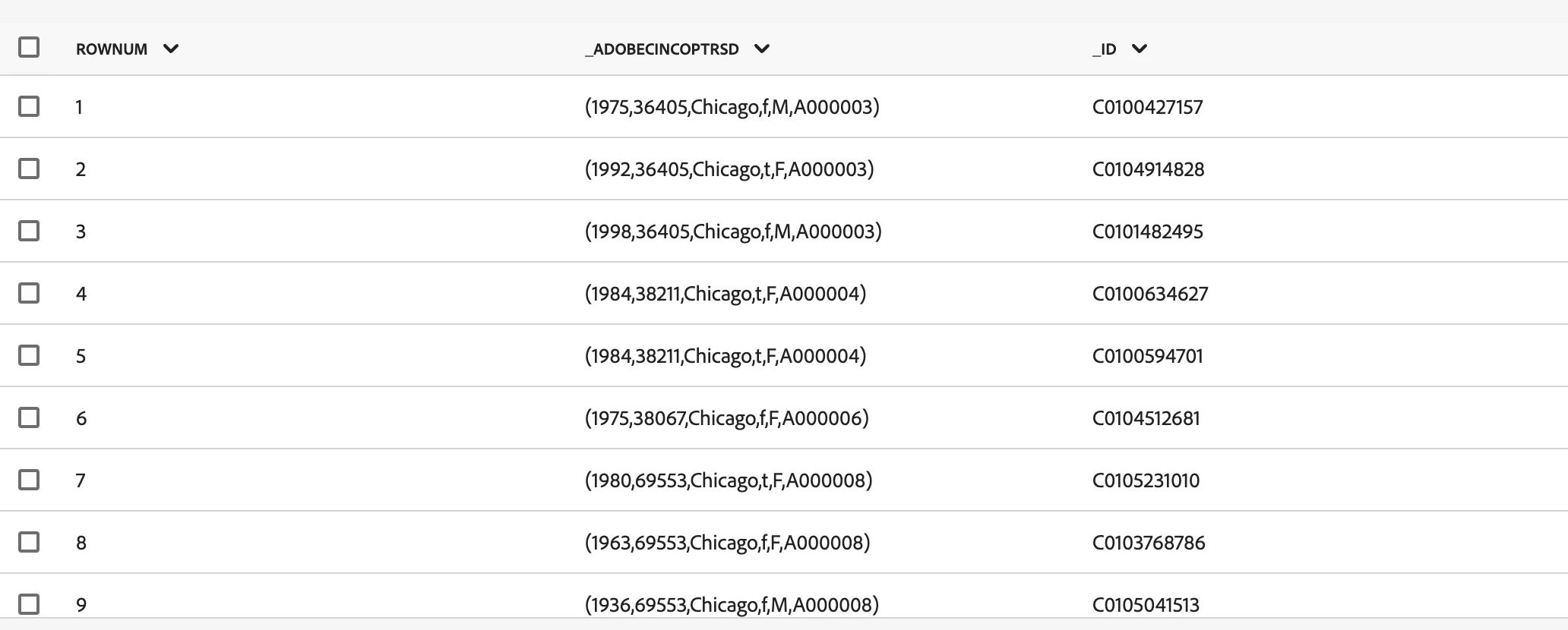 Once, I am able to ingest the data in the schema it is successful but when I query it, it give me something like this: