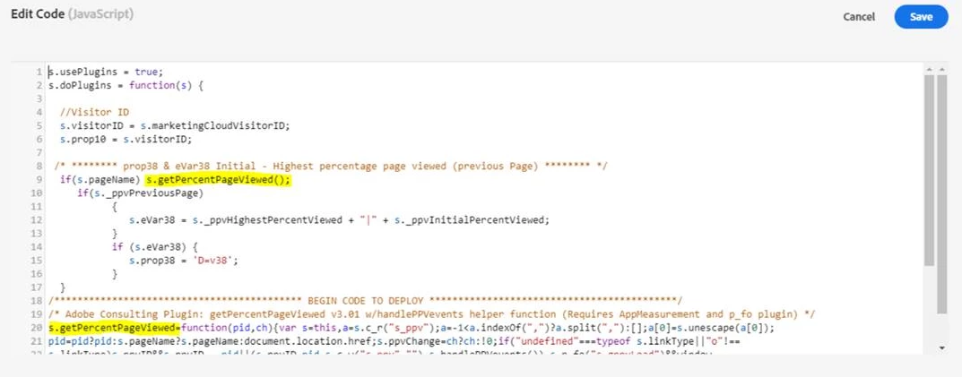/* ******** prop38 & eVar38 Initial - Highest percentage page viewed (previous Page) ******** */