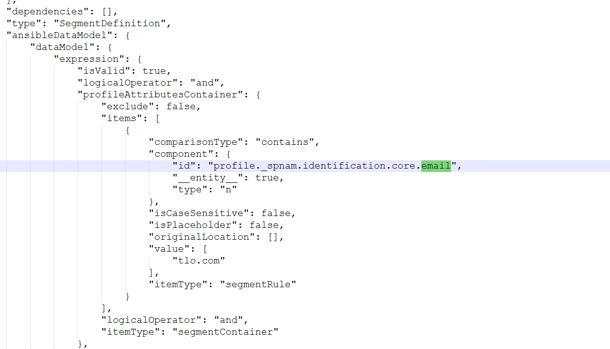 Once you make a request using the above endpoint, you would get all the segment definitions as part of the response which you can then search for a specific attribute like in the screenshot below, I am looking at email.