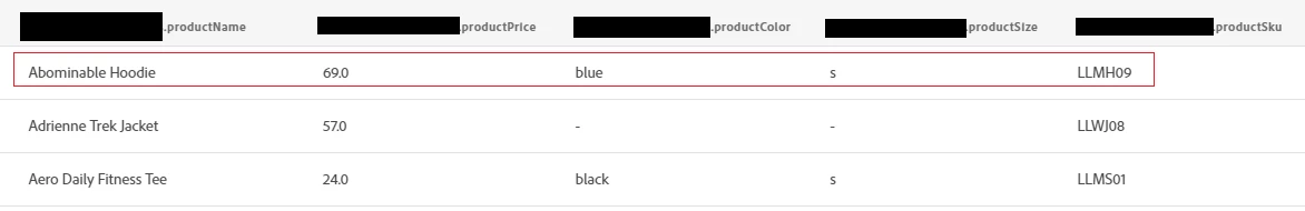 After configuring all these, when I am triggering the event by passing the correct SKU (no price information is passed in the event), I could see the event in AEP correctly tied to the profile, but I am not able to see the profile under the segment as the product price is more than $50.