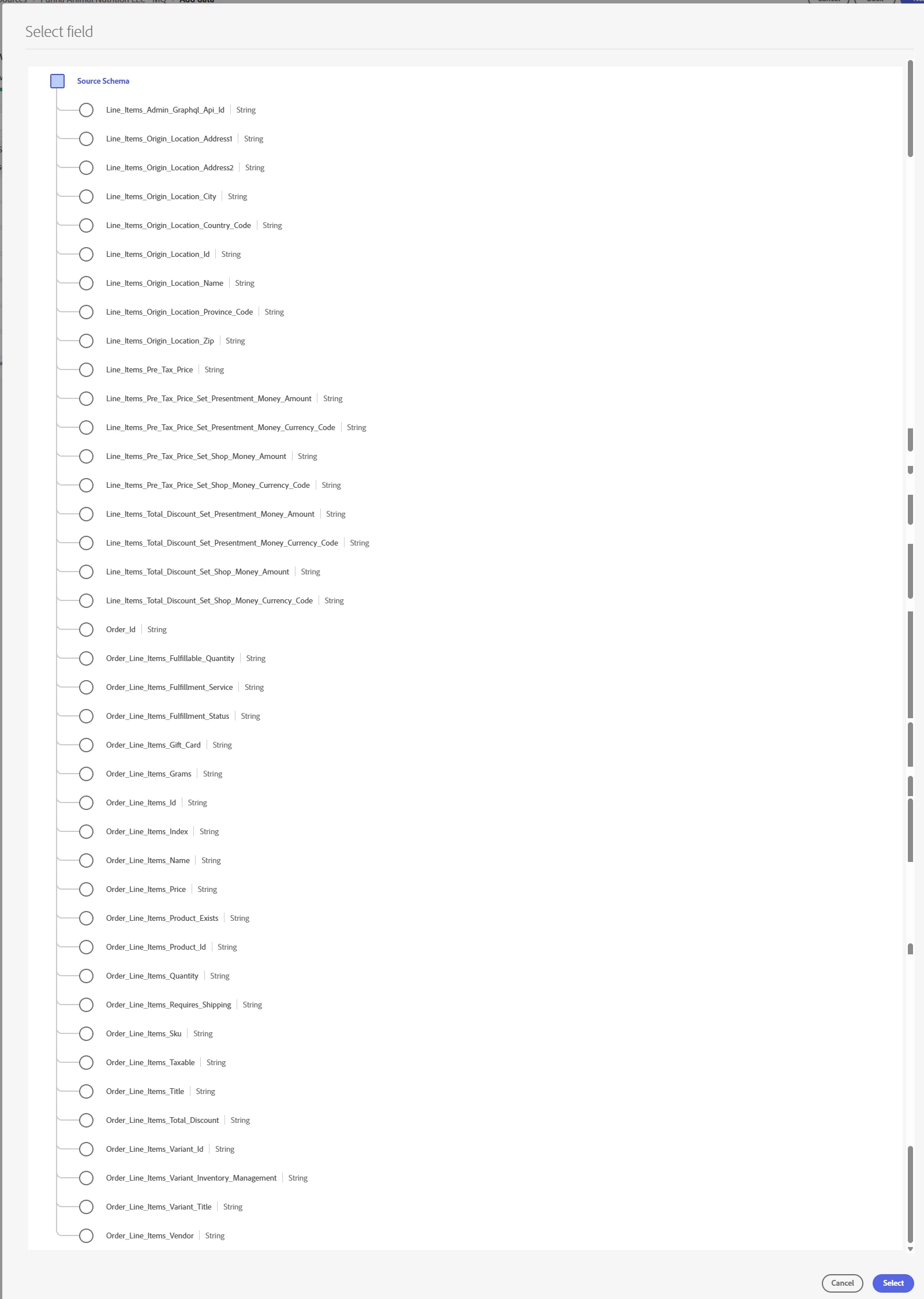 The Shopify Order_Line_Items table is missing a timestamp field needed to schedule a dataflow connection to pull in order details that relate order and products from Shopify into AEP. I was able to schedule data connections for the Orders and Customers tables. However, the Order_Line_Items table is needed to tie the products to the orders. Without this timestamp field we cannot use this Shopify connector.