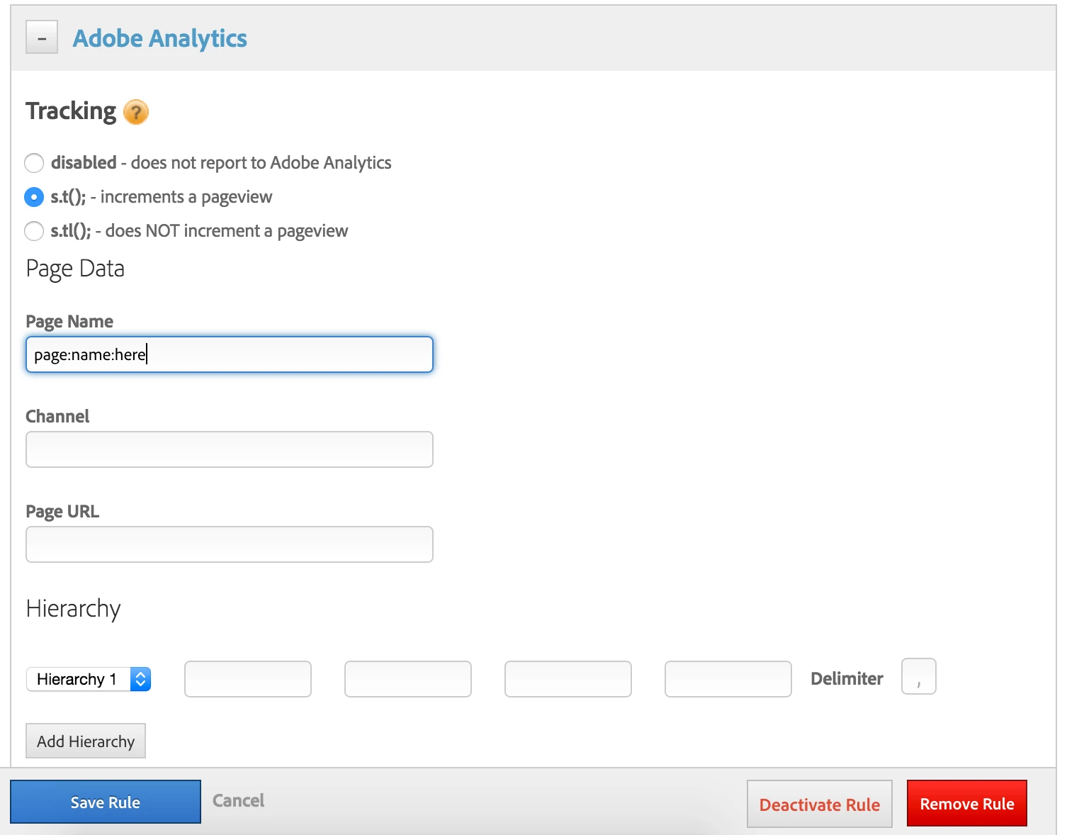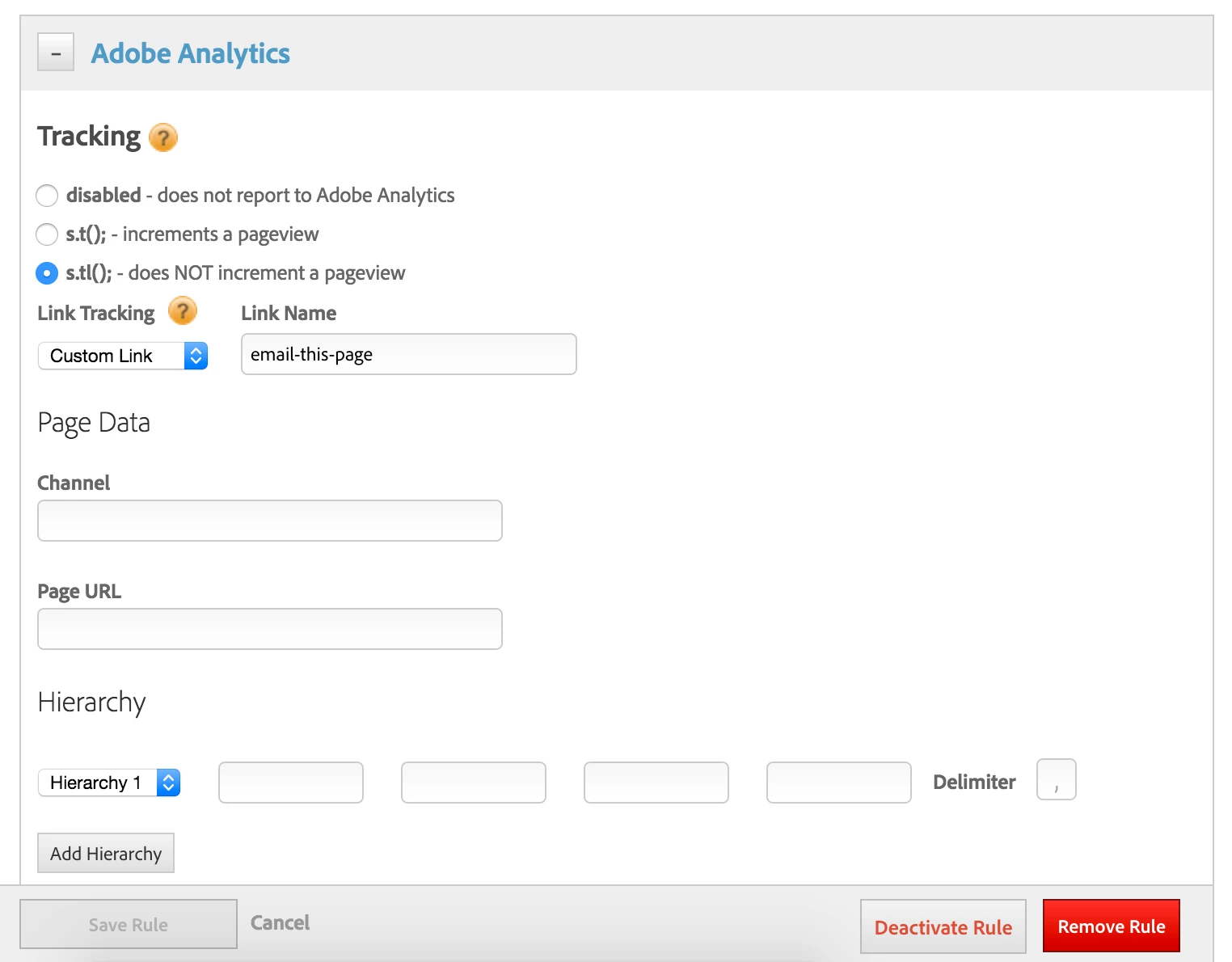 2) Correctly setting the page name and custom link, as I can only send one or the other in the Adobe Analytics section of a DTM click event rule. The two pictures show what I mean.