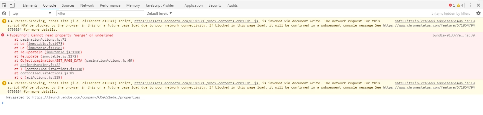 The error in console is as per the screenshot