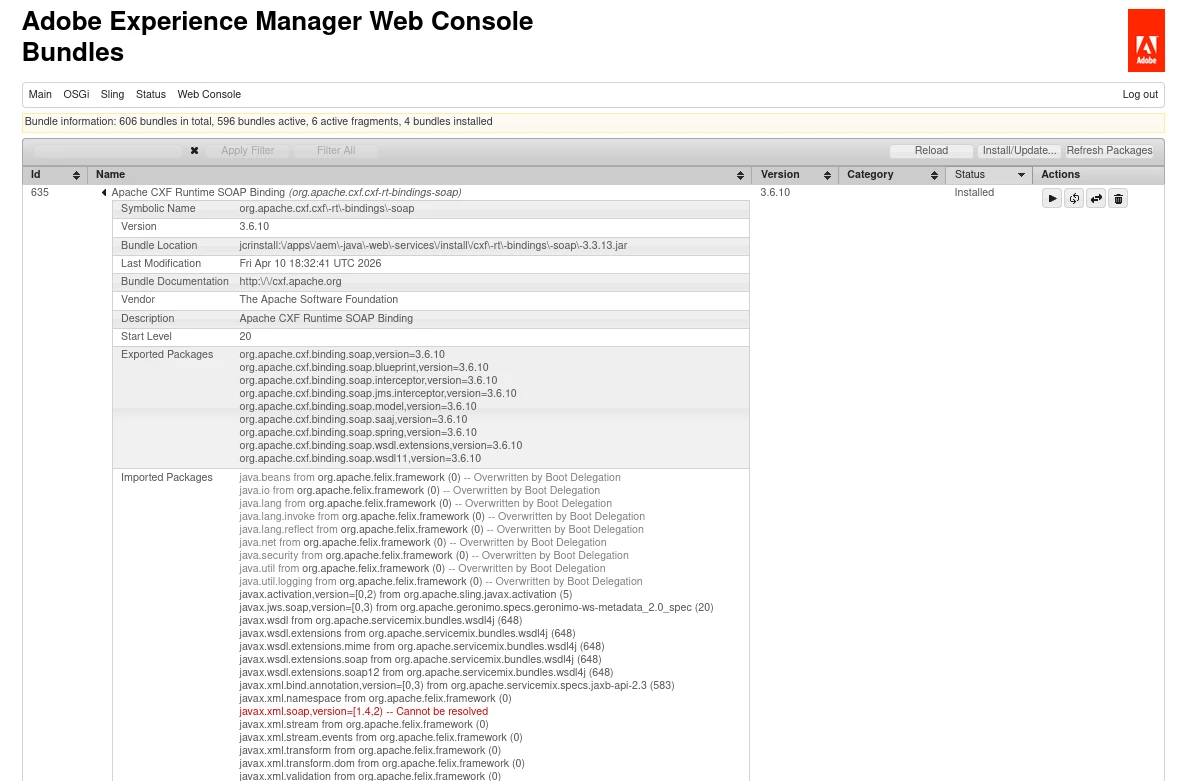 Our goal would be to install Apache CXF 3.6.x, currently 3.6.10, as that is still actively supported, but the old SAAJ API is preventing us from doing that, see javax.xml.soap,version=[1.4,2) -- Cannot be resolved: