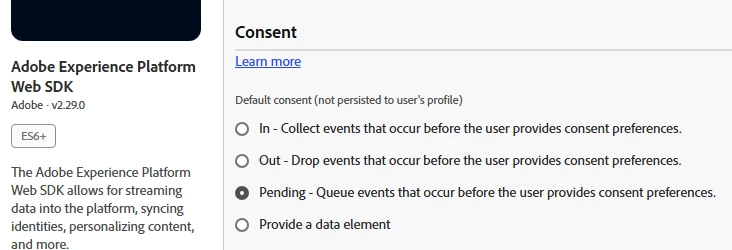 Within Adobe Tags, when setting up the Web SDK extension, we have default options for consent. Three default models (in, out and pending) as well as a configurable object to configure with more in-depth level.
