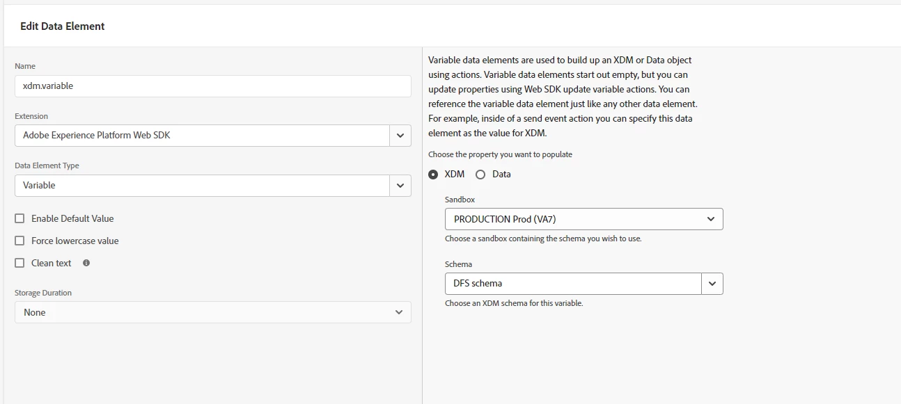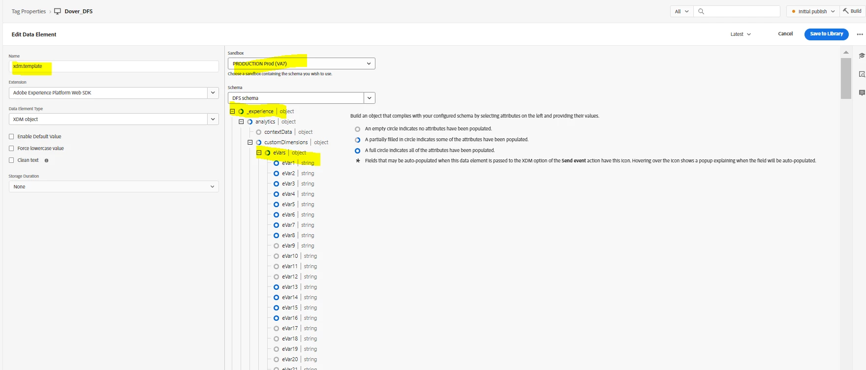 I'm just learning the SDK. I added the Analytics Field group to my schema. The issue is when in Tags, in a rule, when I'm trying to use the SDK "Update Variable" action type, I don't see any of the new fields in the XDM Variable Editor. Do I have to create a new data set first before I see the change to the XDM? Why isn't the XDM updating?