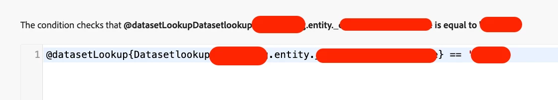 @datasetLookup{MyDatasetLookUpActivity.entity._partner.loyaltyTier} == 'Platinum'