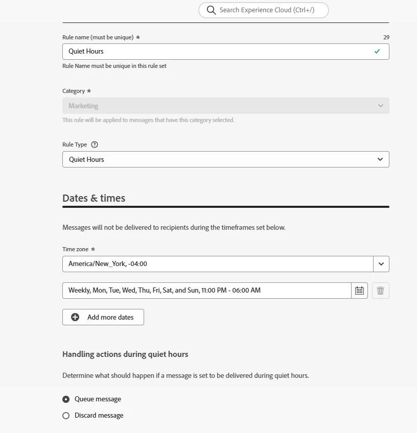 AJO Quiet Hours: Does queued message use real-time or event-time attribute values?