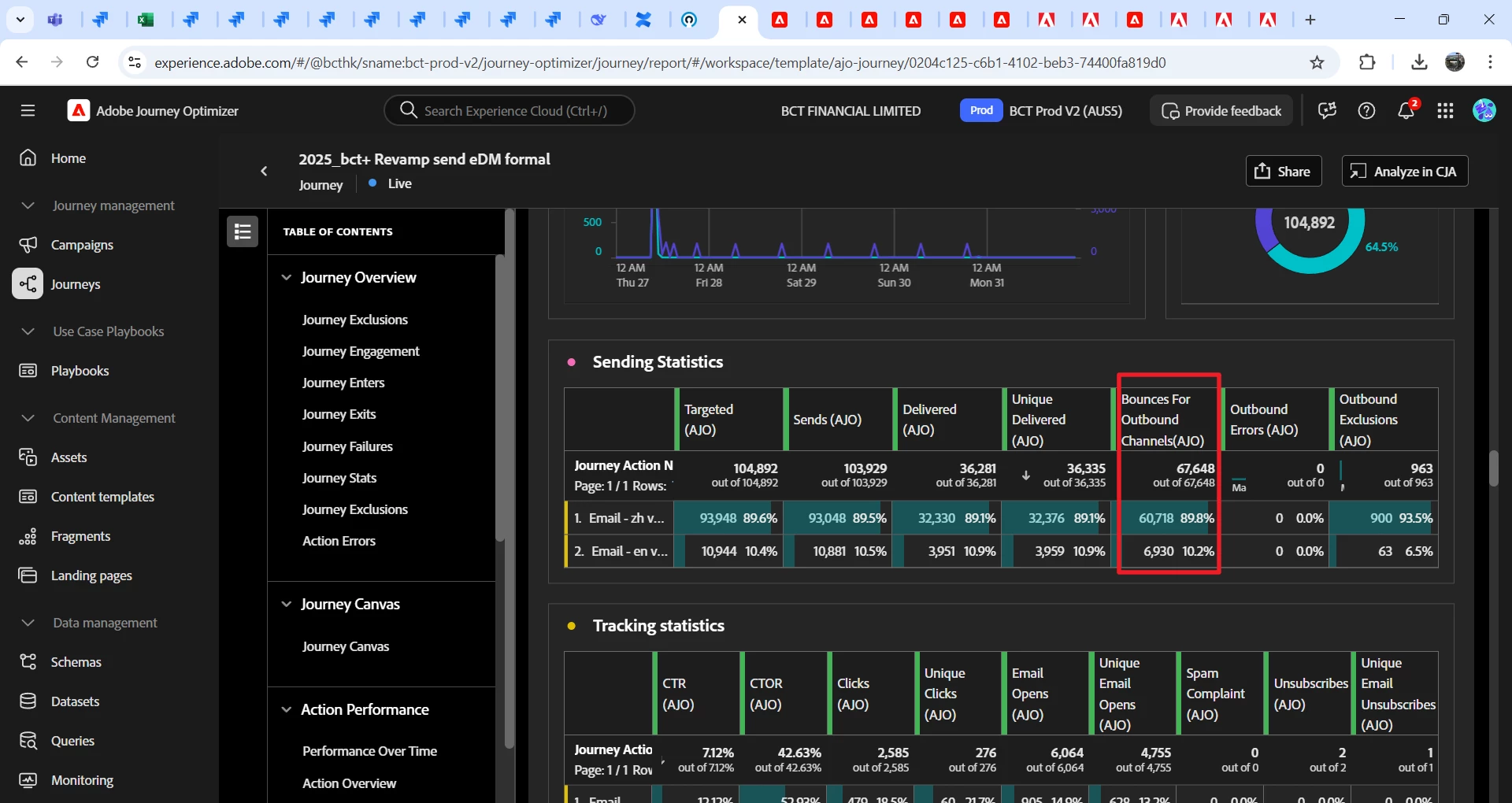 Amounts of email drop into "Bounces for outbound channels(AJO)" category on my email journey