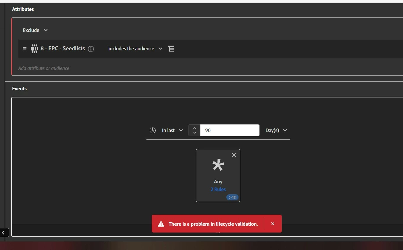Anyone have an issue with audience lifecycle validation when trying to save an audience?
