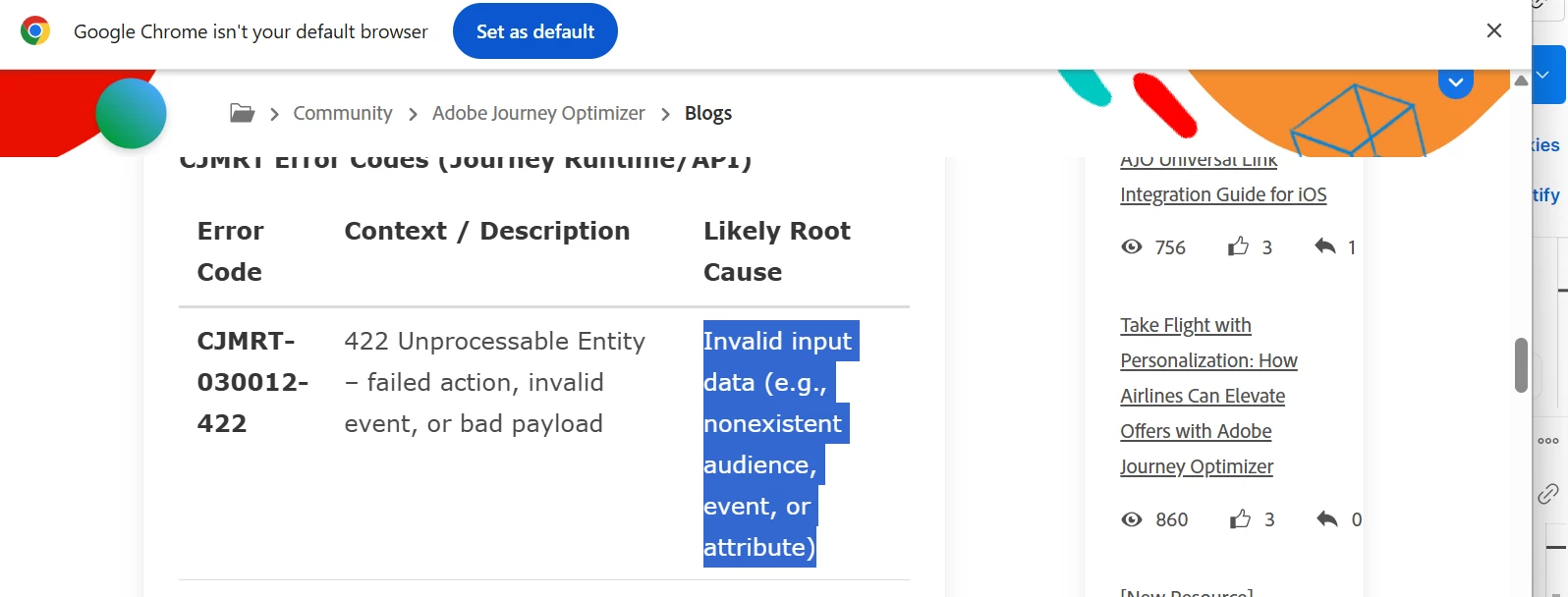 Hello, I have created a Test API triggered campaign with content experiment (3 Emails, A/B/C) and tried to trigger it from Postman but getting error 422 unprocessable entity. Please check the screenshot.