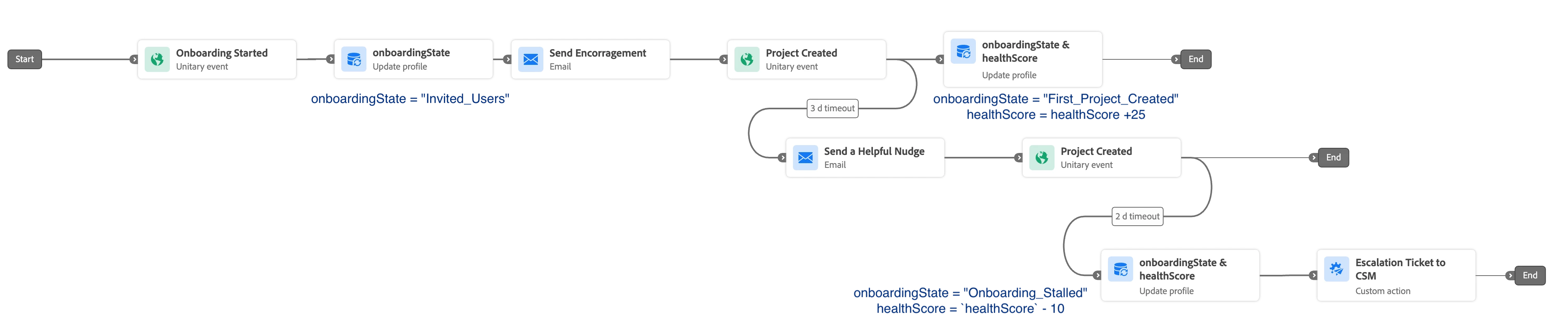 The model must be flipped. Instead of waiting for end-customers to fail, enterprises must use orchestration tools to engineer their success. An intelligent system is needed that not only guides new users through critical milestones but also proactively identifies when they are struggling and intervenes before they become frustrated. This is where a real-time orchestration engine like Adobe Journey Optimizer can be leveraged far beyond its traditional marketing role.