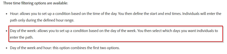 How to write the condition in journeys which checks if today's day of the week is mon-fri or saturday/sunday?
