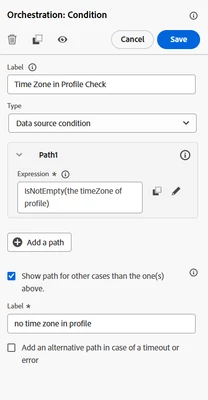 isNotEmpty(#{ExperiencePlatform.ProfileFieldGroup.profile.timeZone})