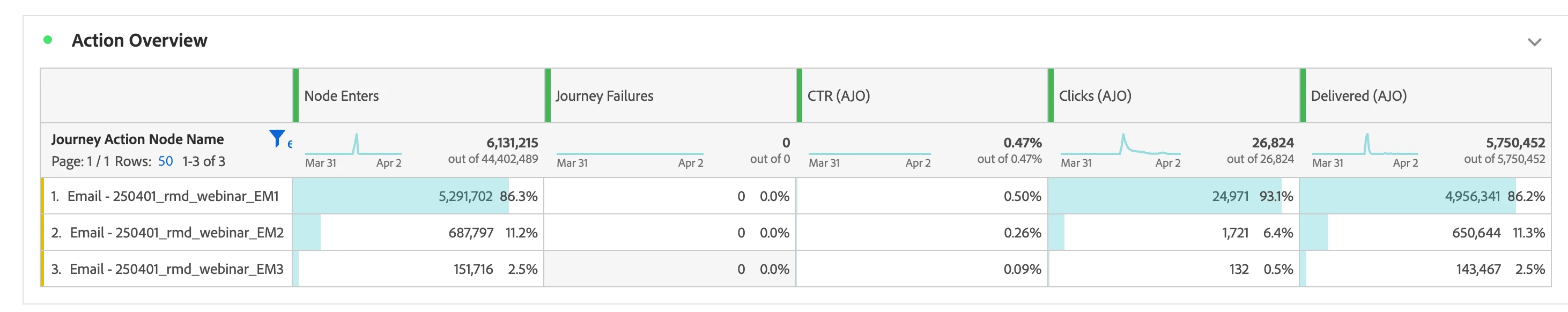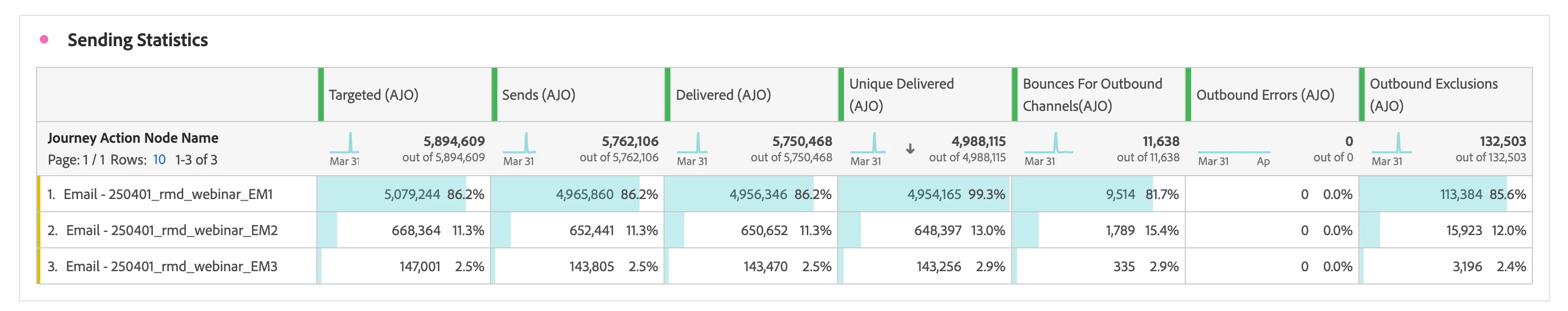 In this journey, we have 3 separate email deployments. The data seems to be different data between the Action Overview module and Sending Statistics in the report.