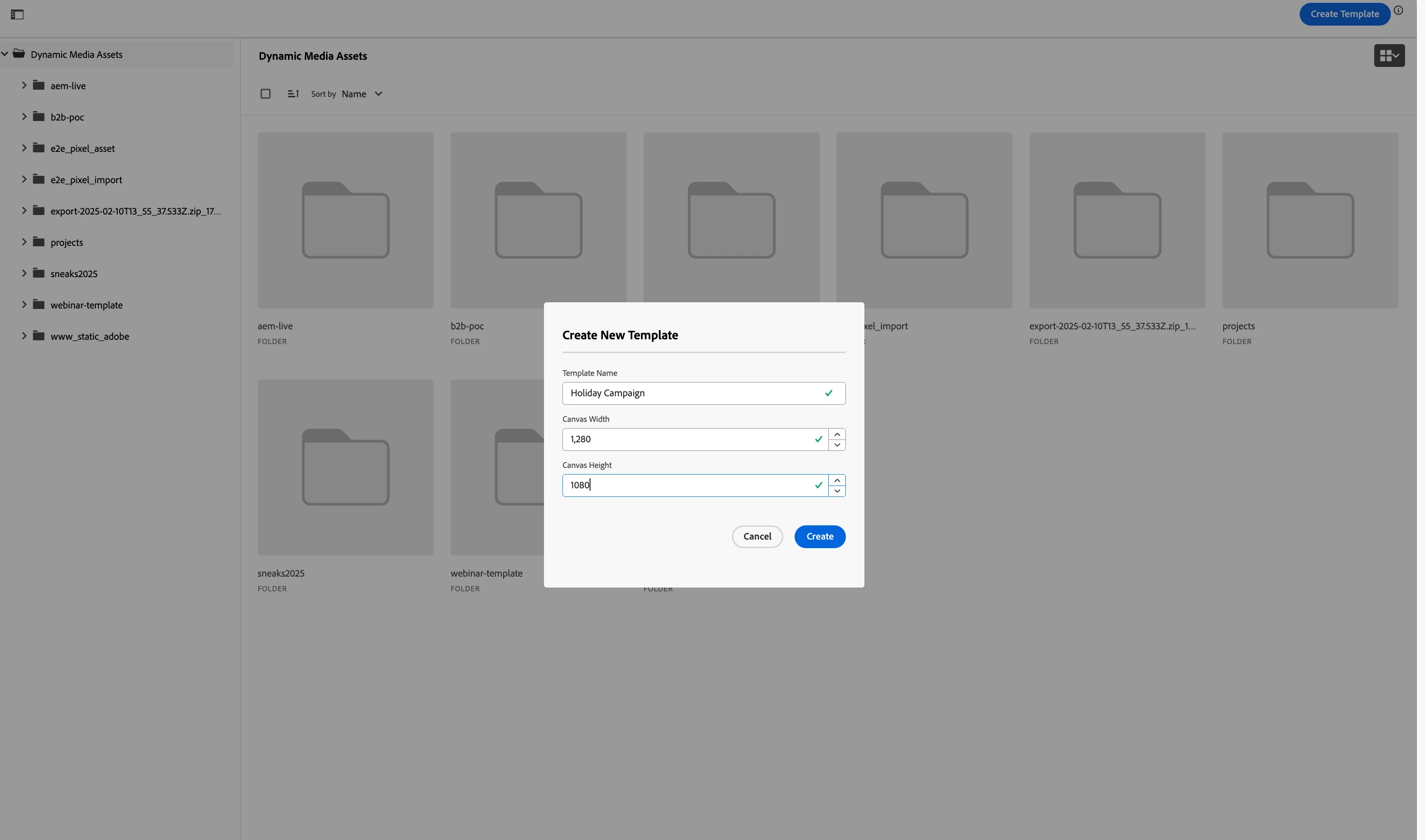 - Enter template name and canvas width and height.