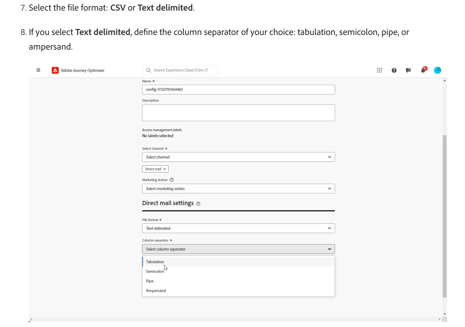 file format is to choose what delimiter you would export comma or else. Not relating to file type and do not think on the channel configuration having such option.