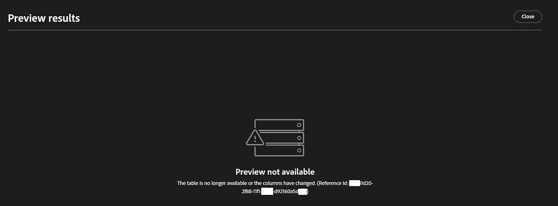 Current Behaviour The preview functionality between nodes frequently fails with non-descriptive “something went wrong” or “table has changed” errors, hindering data validation