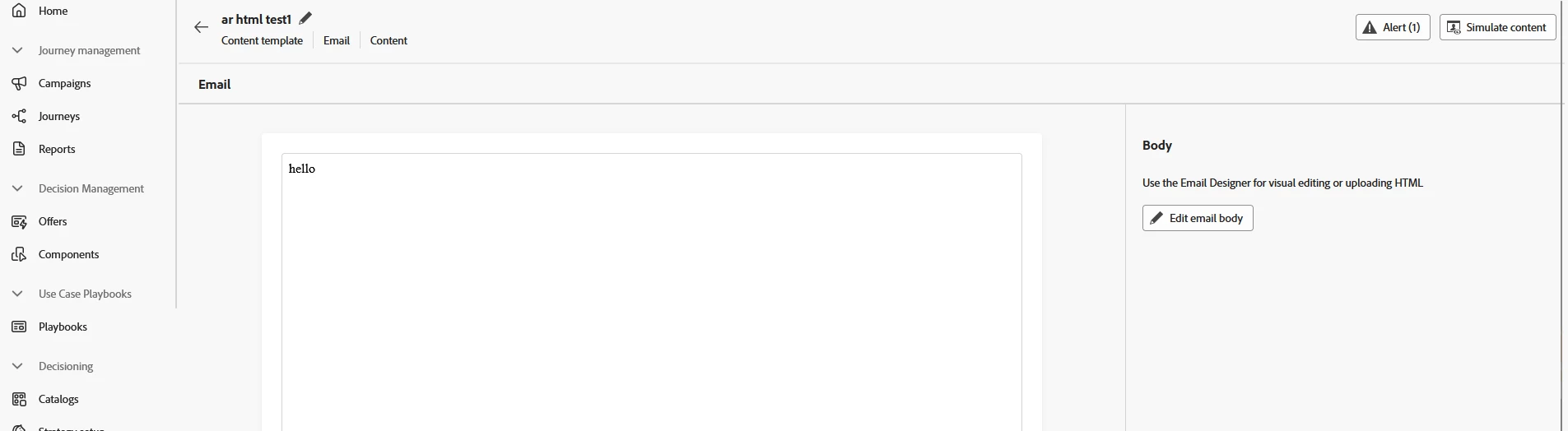 Issue while creating AJO Content Template through Postman API