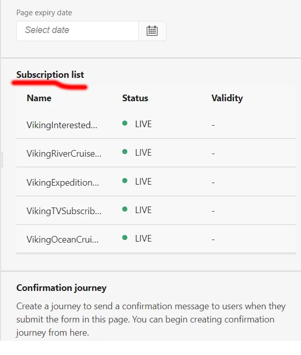 @georgevi2 By looking at the subscription list names from the screenshot there don't seem to be any duplicates. Would it be possible to see the form field mapping within the email designer where you have selected the subscription list for each option>?