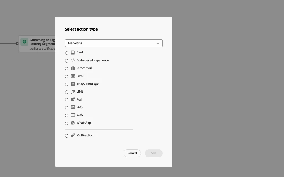 The new action node will ultimately replace all of the native actions in the Journey left rail, but in this release we are allowing users to explore this workflow as an addition to the existing native channels.