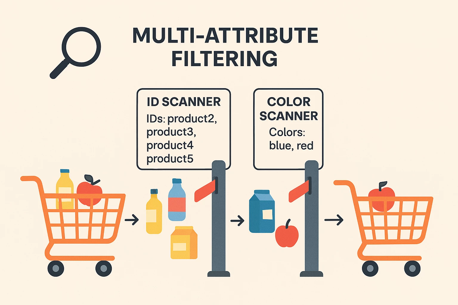 When working with lookup schemas, you may often need to filter a list of objects based on more than one attribute. This guide explains how to perform multi-attribute filtering on lookup schemas using nested filter() functions. This is especially useful when you need to narrow down a list of objects based on more than one condition—such as filtering products in a shopping cart by both ID and color.