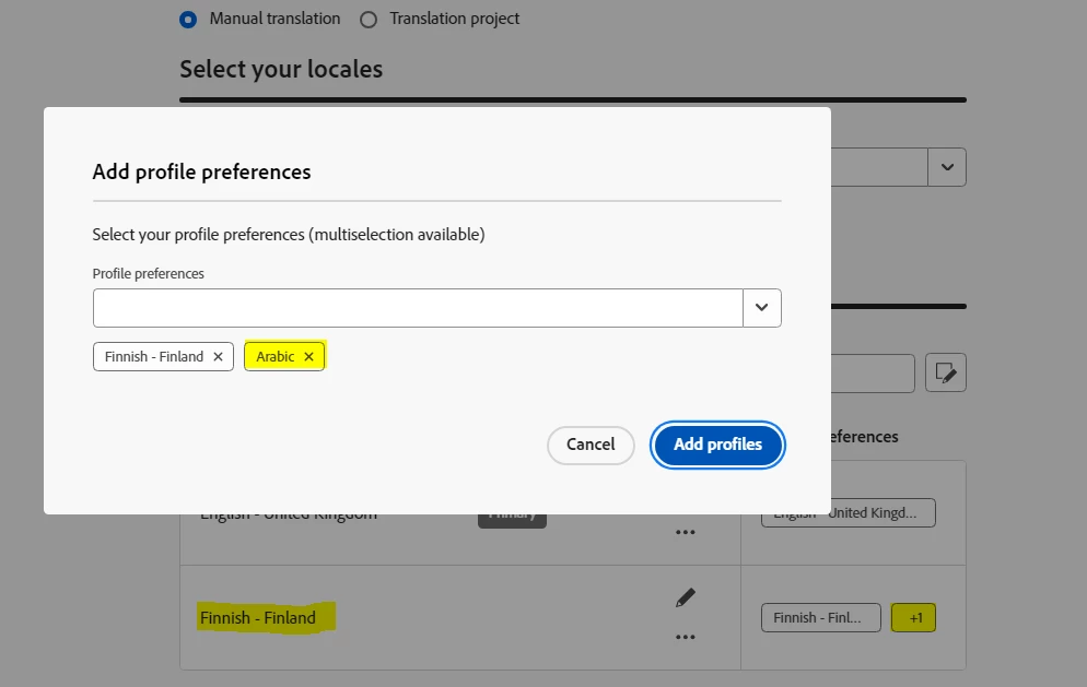 While setting up the language setting for multilingual content, I added two locales : one is primary and other one is secondary(preferred language). Now if I click on pencil button of secondary locale(i.e. Finnish) it gives me option to add "profile preferences". If I add one more preferences(eg. Arabic) it gets added to the secondary locale and shows as +1. So, my question is what does it mean by adding more than one preferences into a single locale?