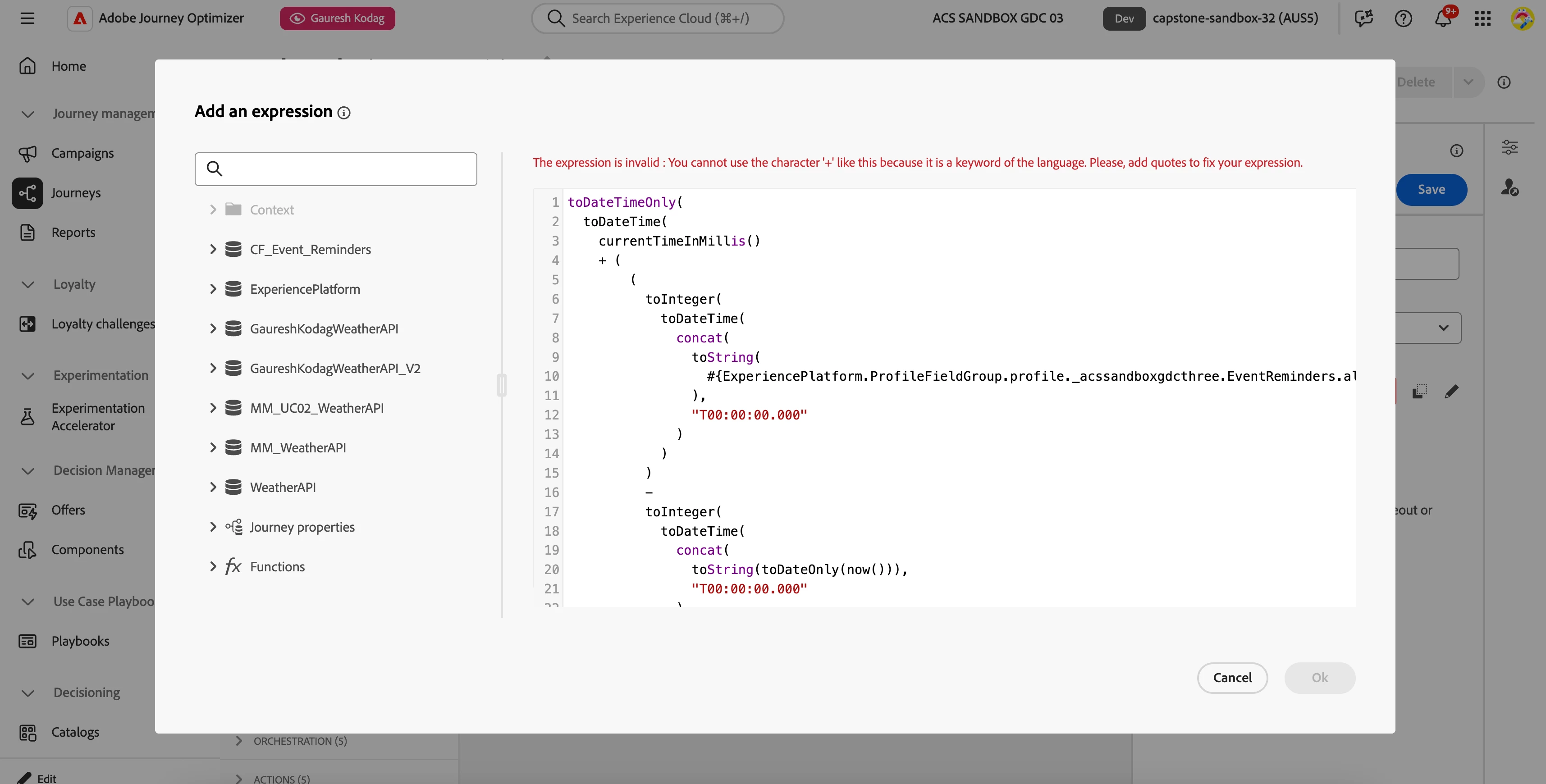 If you have ever pasted a carefully crafted date-time expression into a Journey wait node and been greeted by a vague parser error about the plus sign, you are not alone. Journey Optimizer’s expression language is strict about how arithmetic is written, and one missing pair of parentheses is enough to block your journey.