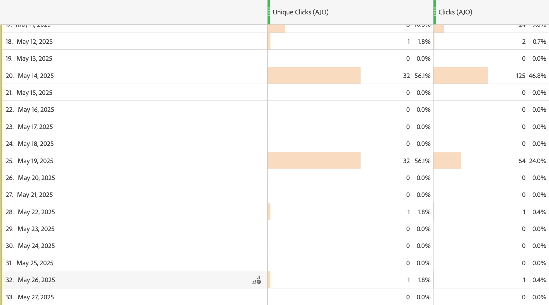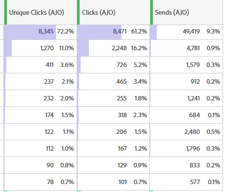 Hi Team, For a journey consisting multiple emails we are observing that on a particular day we are seeing a significant bump in number of clicks in email, but followed by no clicks for next 4-5 days. The profiles enter journey on a daily basis so it should not be happening, we should be observing certain number of clicks everyday. Can you please guide on what could be the reason. Thanks
