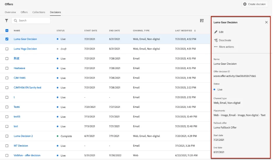 Offer decisioning via Web Channel in AJO