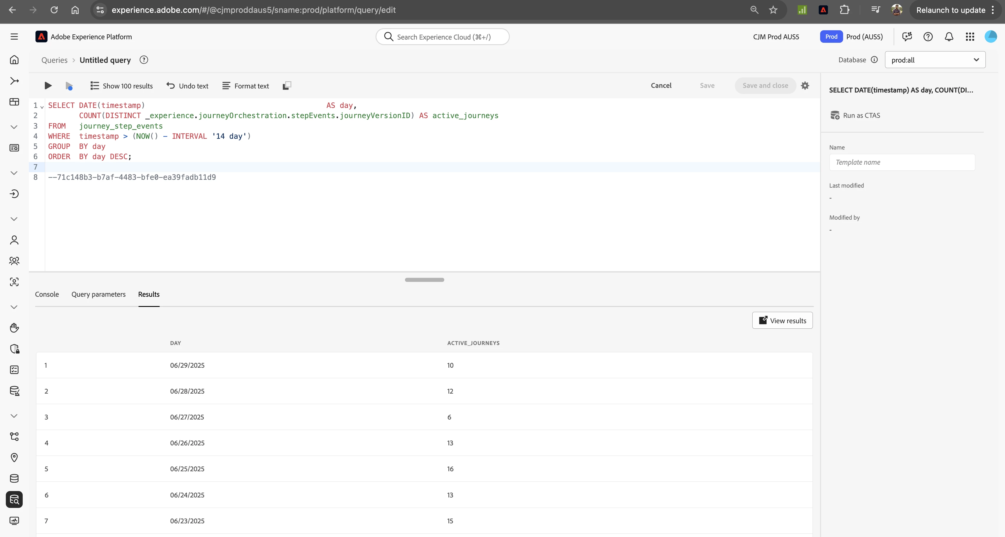 COUNT(DISTINCT _experience.journeyOrchestration.stepEvents.journeyVersionID) AS active_journeys