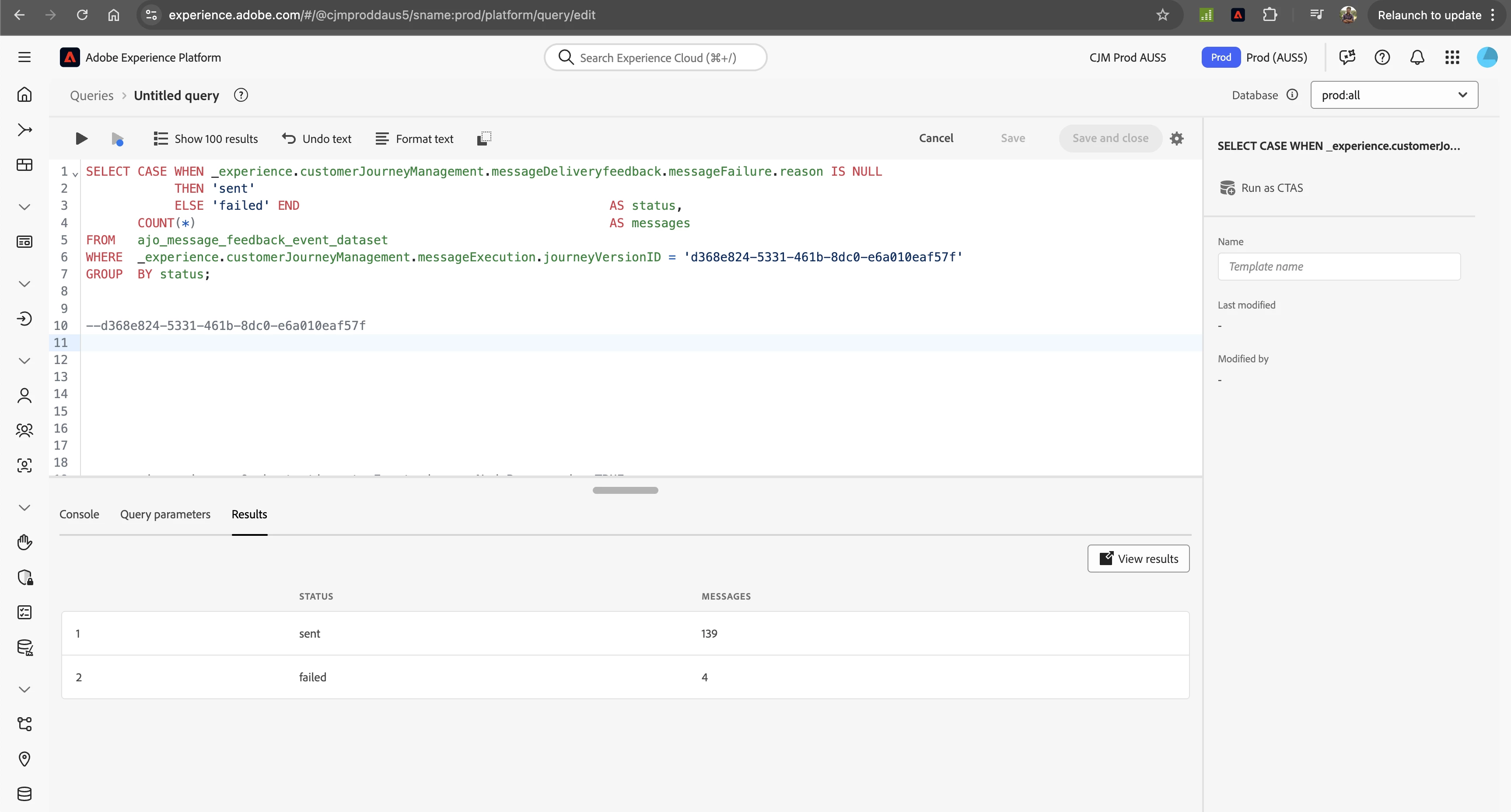 SELECT _experience.customerJourneyManagement.messageDeliveryfeedback.messageFailure.reason,