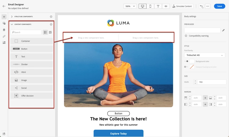 @miguelsi To tackle these Outlook-specific problems, you can incorporate MSO specific tags within the HTML content component.