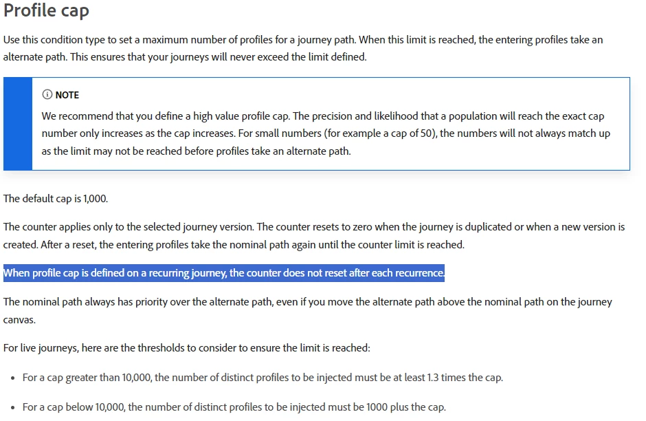 1. Does this mean the weekly 1000 profile cap is at journey level that when the first deployment has reached the limit, the subsequence runs will not pick up any eligible profiles?