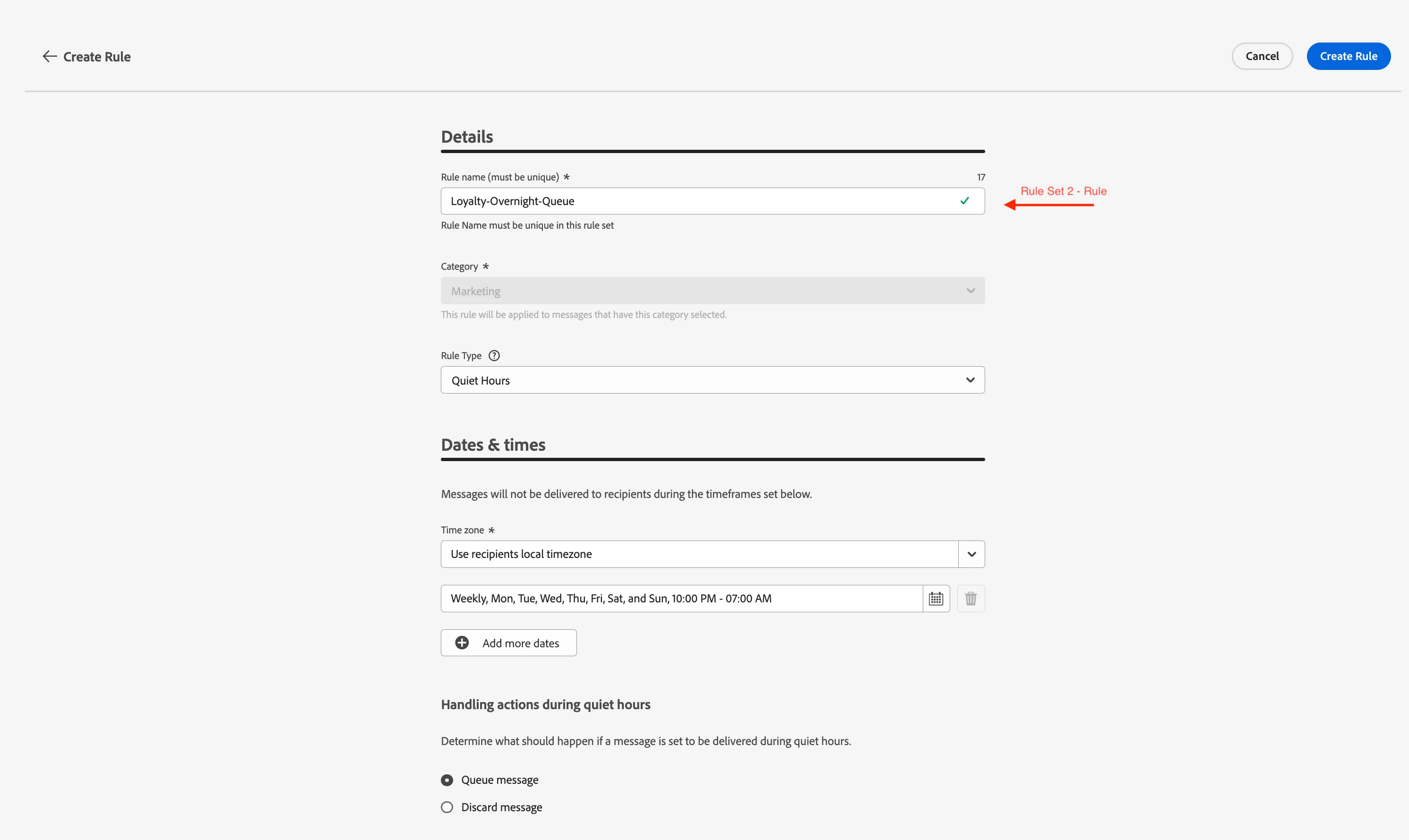 Rule Set 2 — Loyalty-QuietHours (applied to loyalty and win-back journeys)