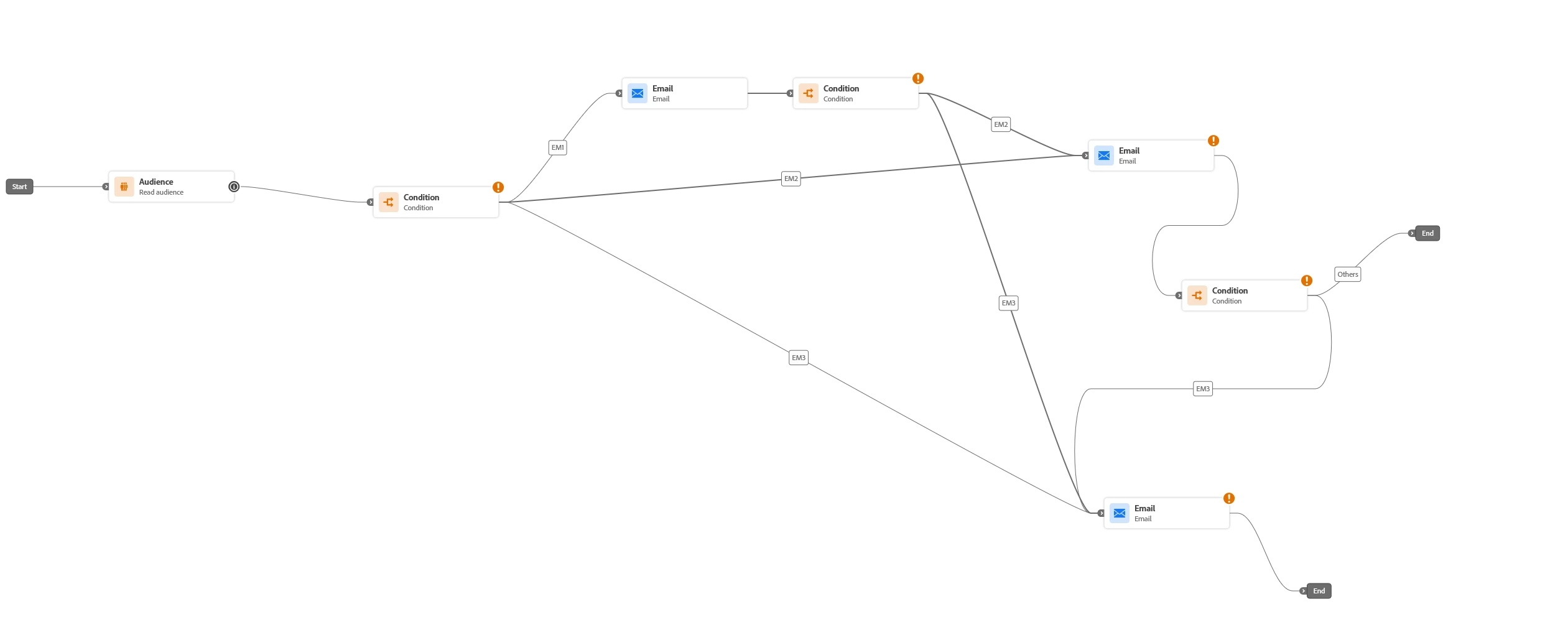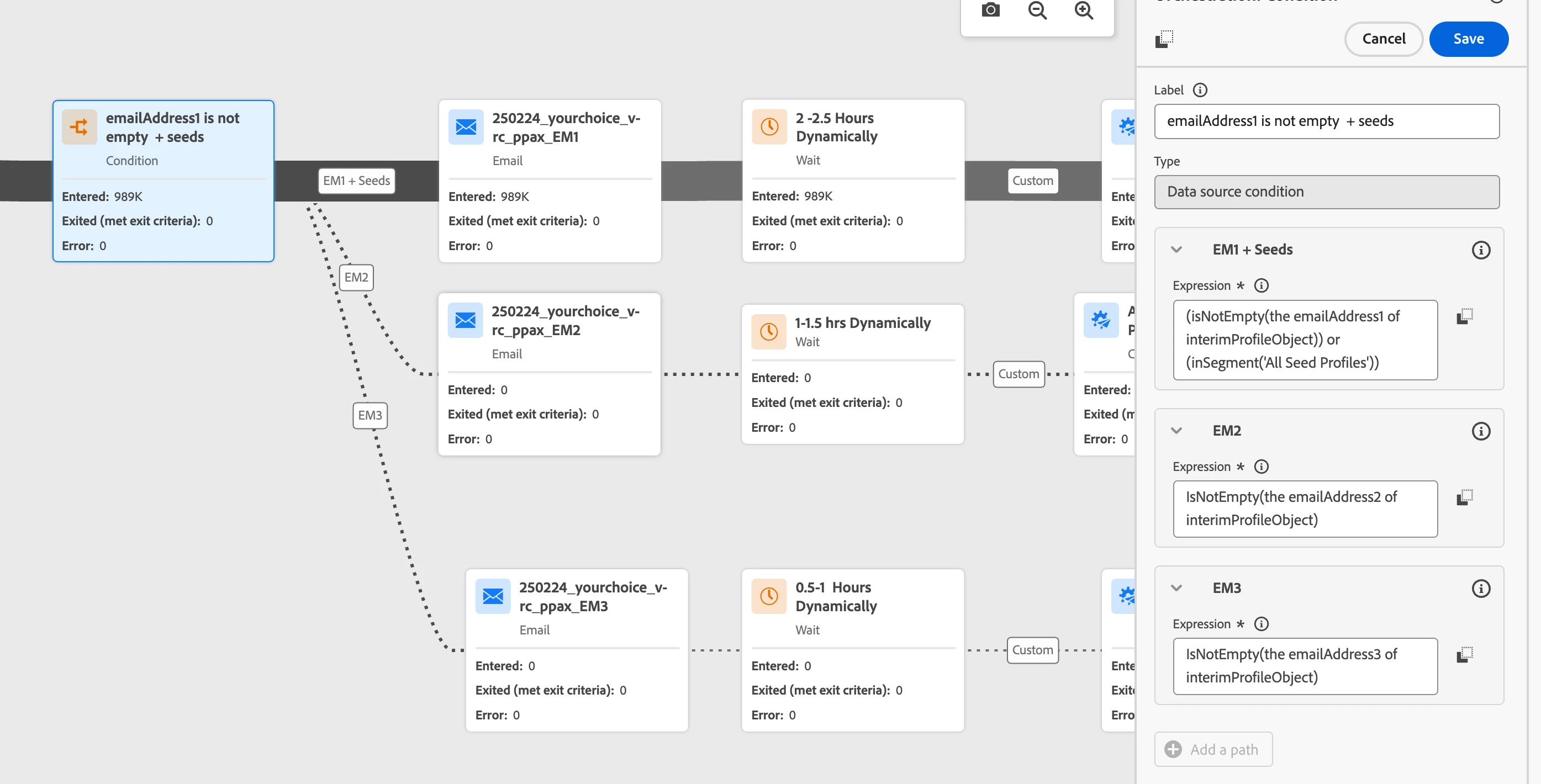 Is it possible to have a single profile go down multiple paths at the same time? In the attached example, everyone in my audience meets the criteria for path1. Some also meet the criteria for path2, and some meet the criteria for path3. We want those who meet the criteria for path1 and path2 to process at the same time. Is this possible? We also want those who meet the criteria for path1 and path3 to process at the same time.