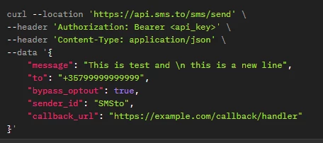 Here the cURL for sending an SMS (no neccesary to create a token for sending)