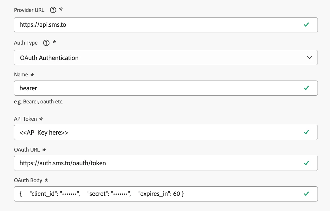 Hi, I have a question regarding token/API key when configuring a new API Credentials for an SMS custom provider.