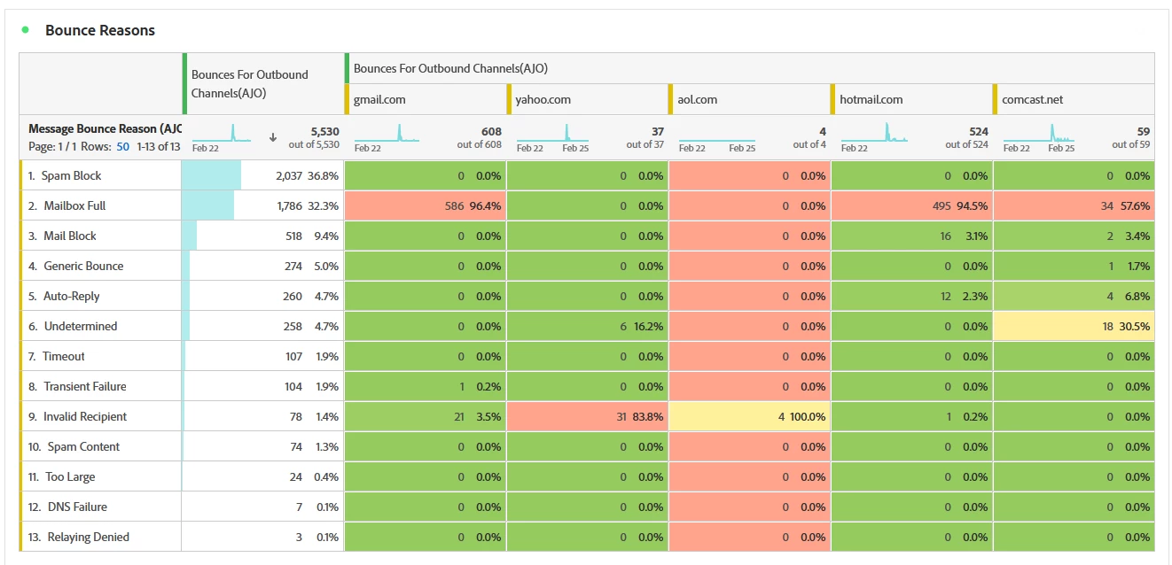 Trying to find out if there is somewhere we can see soft bounces in journey reporting. The bounce reporting only shows hard bounces. Please let me know if this is possible and if so how to execute finding soft bounce reporting. Thanks for the support