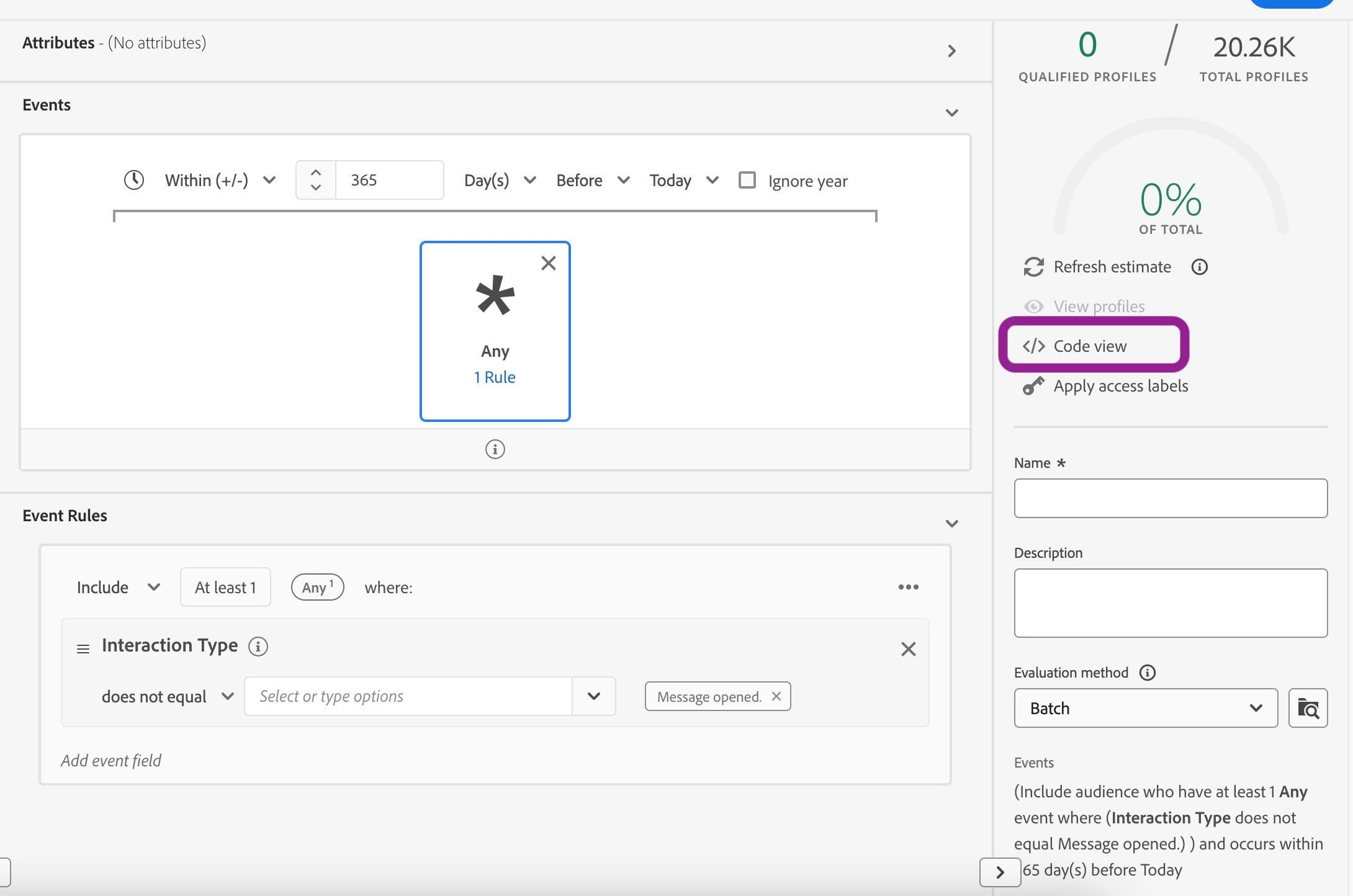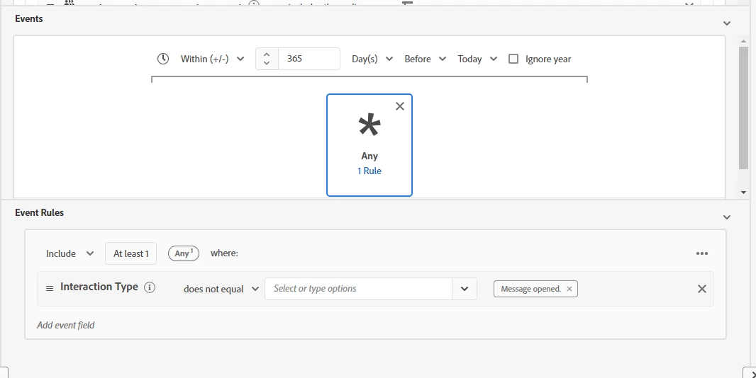 The thing is when creating the audience I don't know how to establish the conditions so that the audience only includes contacts who have not opened an email for 12 months on that day, in order that the journey runs daily and only target that users.