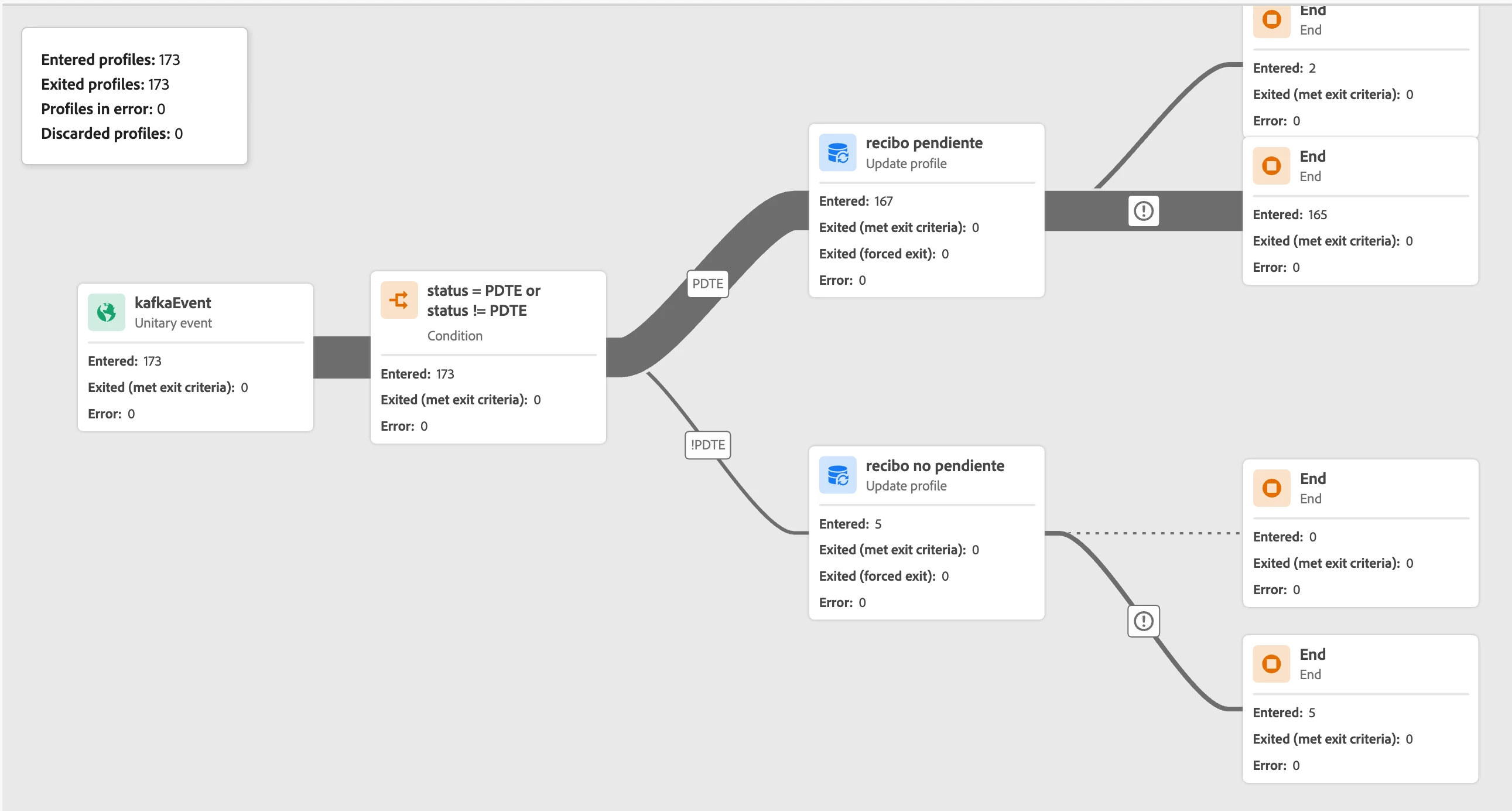 When in test mode, everything works fine. But then, when Published, the path that the journey takes is sometimes the correct one and other times the alternative error/timeout one.