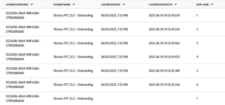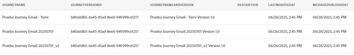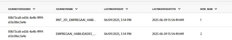 However, I’ve run into an issue: there’s a journey whose name we recently updated (the current journey has the "v2" name, while the other two entries show the old names). Unfortunately, I can’t find a reliable way to filter for only the current journey name.