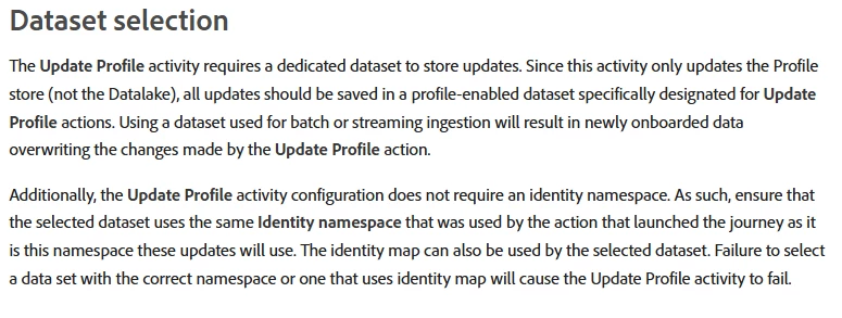 That's right. If another ingestion flow is actively writing to the same dataset/fields around the same time that a Journey updates them, the final field value may reflect the most recent ingestion rather than the Journey update. It is recommended to configure a dedicated dataset (with required attributes) for Journey-based updates or ensuring that no conflicting data ingestion overwrites these fields.