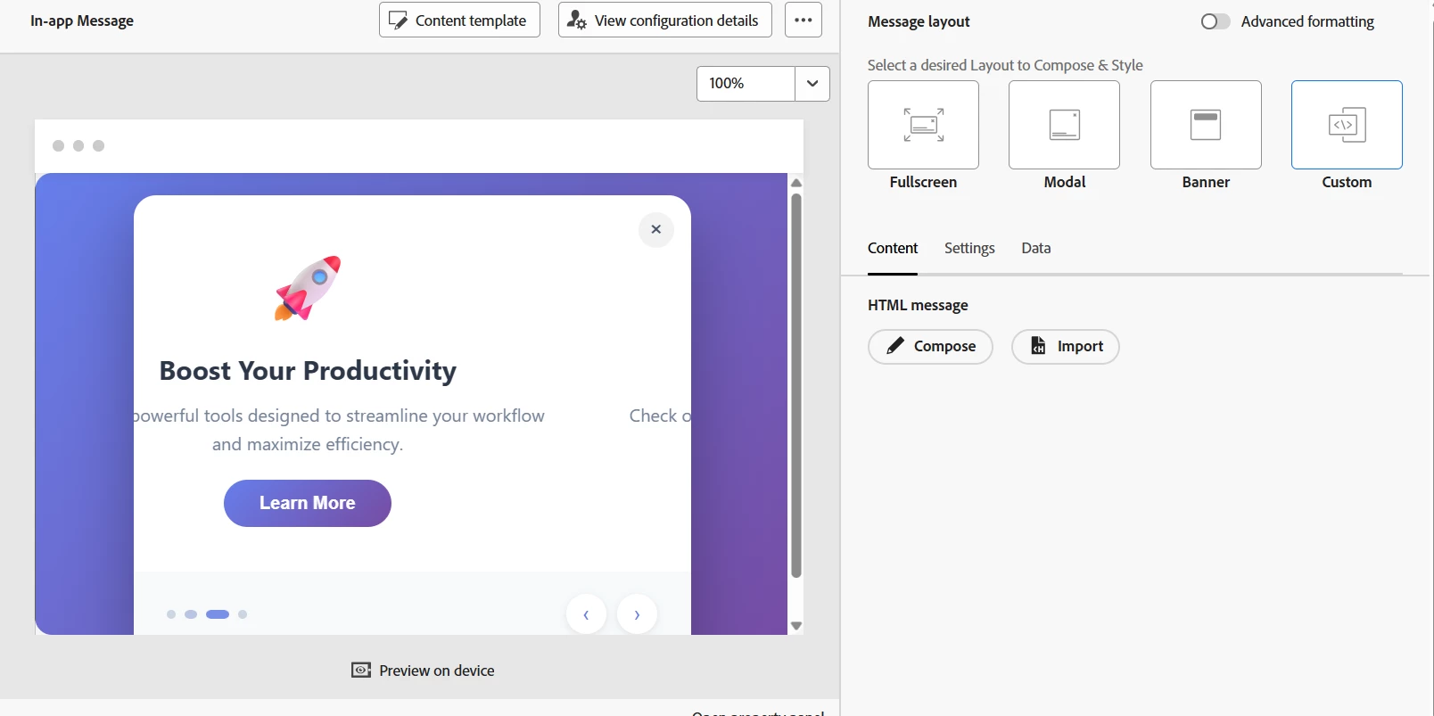Use of Carousels in Adobe Journey Optimiser In-App Channel