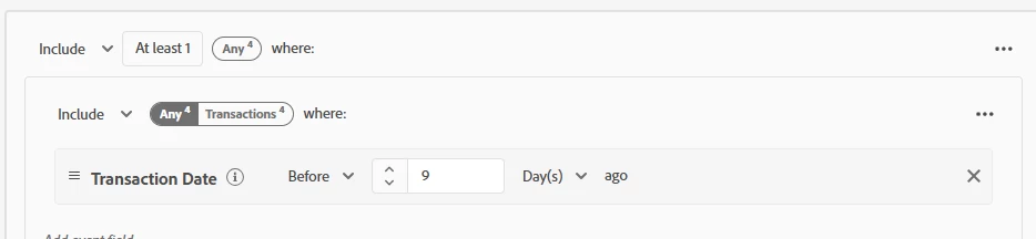 I need some help. I’m trying to use the aggregate function to create an audience. My criteria is: