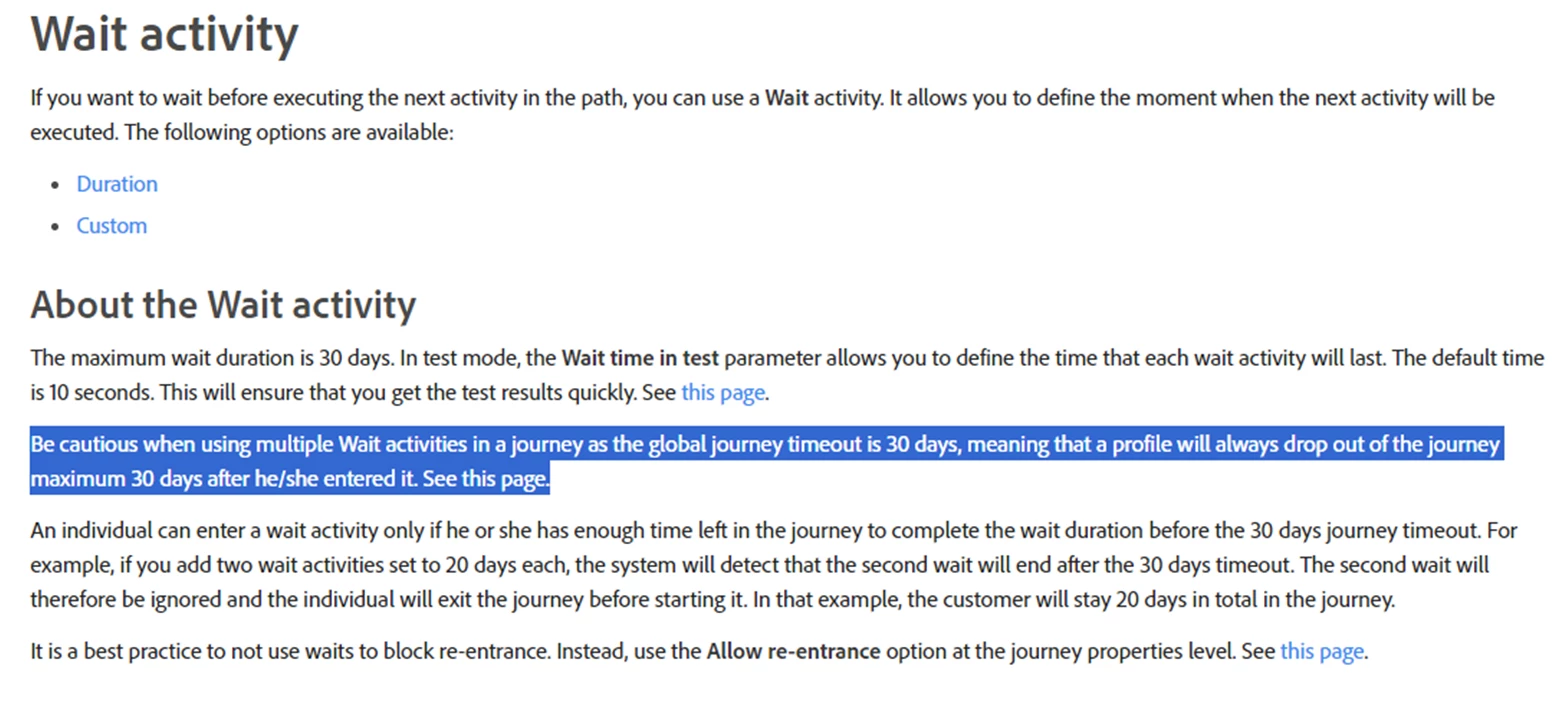 Wait Activity - User Journeys that Exceed the 30 Day Maximum