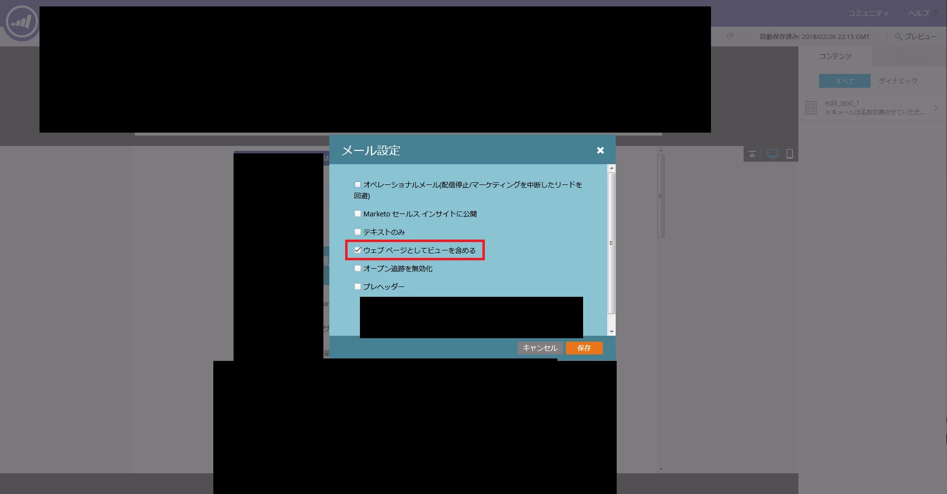 上記機能を利用するなか、「ウェブページとしてビューを含める」にチェックボックスを付けたメールアセットをコピーし、
